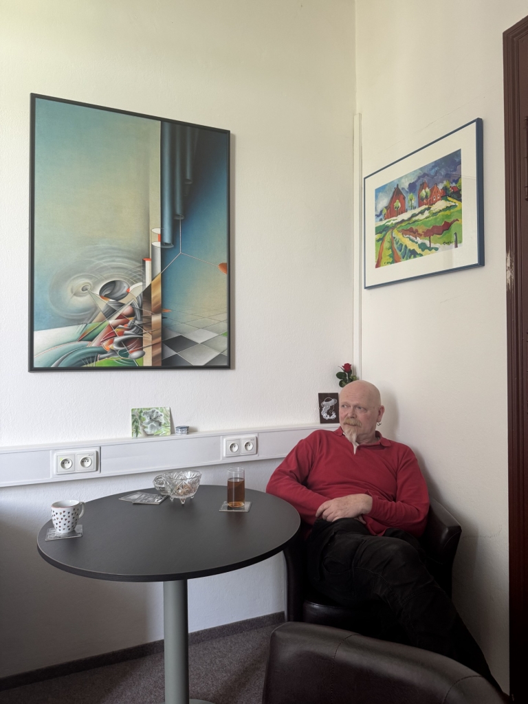 Na druhém snímku je scéna z našeho kabinetu - autor se svým dílem. Technokrajina 2002