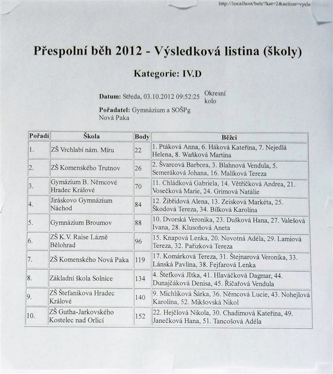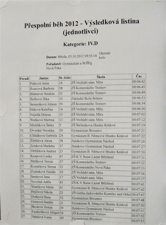 Přespolní běh - krajské kolo - 3.10.2012