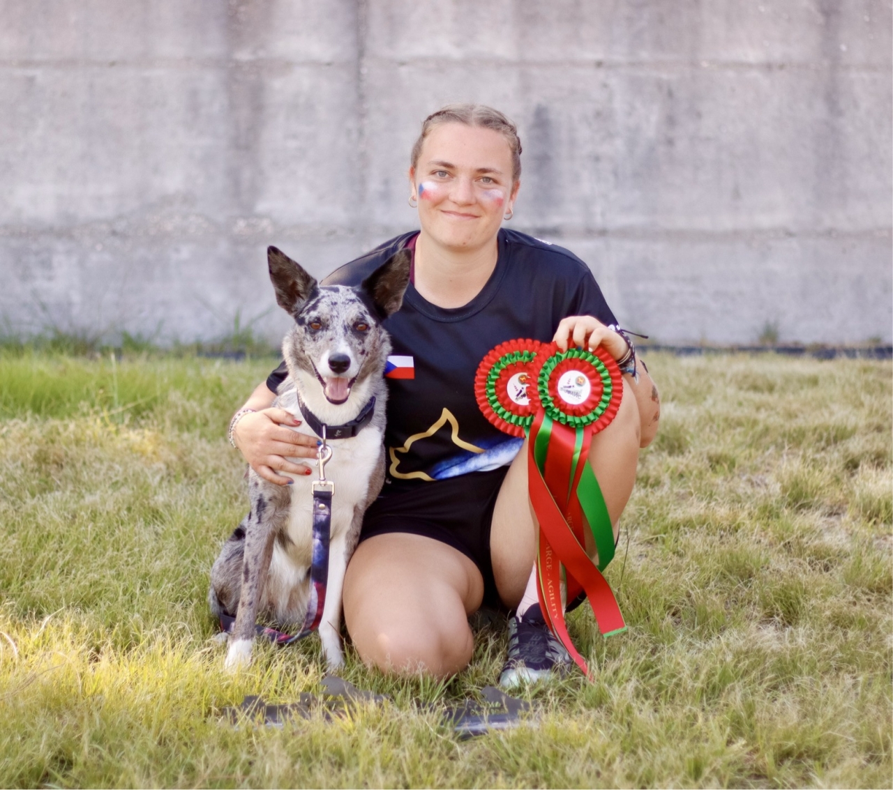 Na juniorském Mistrovství světa v agility, které se letos konalo v portugalském městě Abrantes, jsem se svou fenkou reprezentovala Českou republiku. Cesta dlouhá téměř 3000 kilometrů stála za to. Podařilo se nám vybojovat titul druhého vicemistra světa v naší kategorii Large U19. Agility je sport týmový, kde musí dokonale spolupracovat psovod i pes. V Portugalsku se nám krásně všechno sešlo, a tak si se svou fenkou Skye odvážíme skvělý výsledek, ale taky nezapomenutelný zážitek.